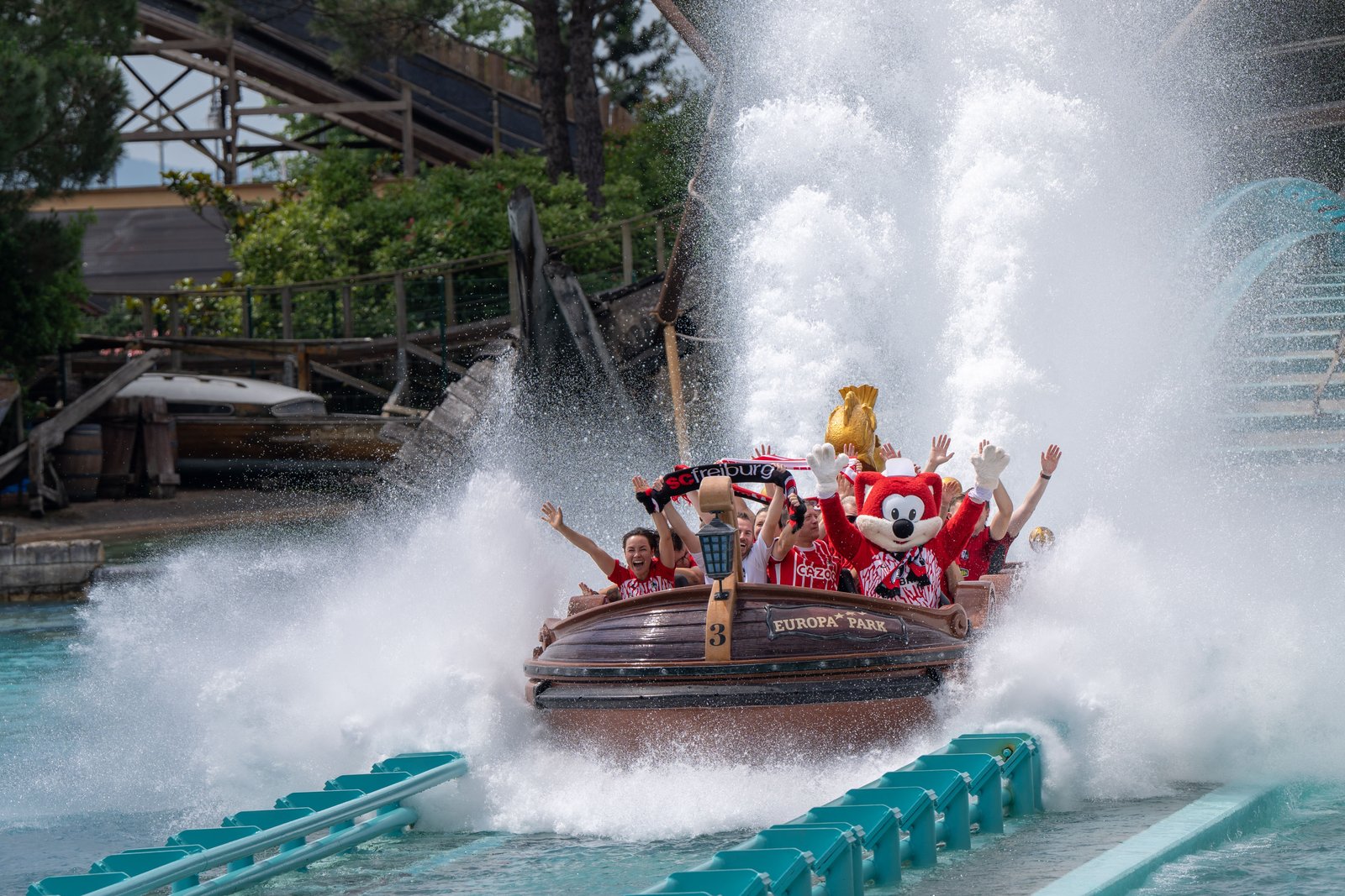 In den europäischen Themenbereichen und vor dem Haupteingang gab es zusätzliche Aktionen rund um den SC Freiburg wie zum Beispiel Fußball-Golf und Torwandschießen, präsentiert von den Kooperationspartnern EDEKA Südwest, WeberHaus, Hilzinger Fenster + Türen, AOK und Schwarzwaldmilch. Die Achterbahnzüge wie zum Beispiel „Voltron Nevera powered by Rimac“ leuchteten an diesem Tag durch die Trikots weiß und rot, und auch das Füchsle und Ed Euromaus hatten jede Menge Spaß in den Attraktionen und Shows. Der SC Freiburg Fantag im Europa-Park zeigt erneut, wie eine perfekt gelebte Kooperation aussieht.