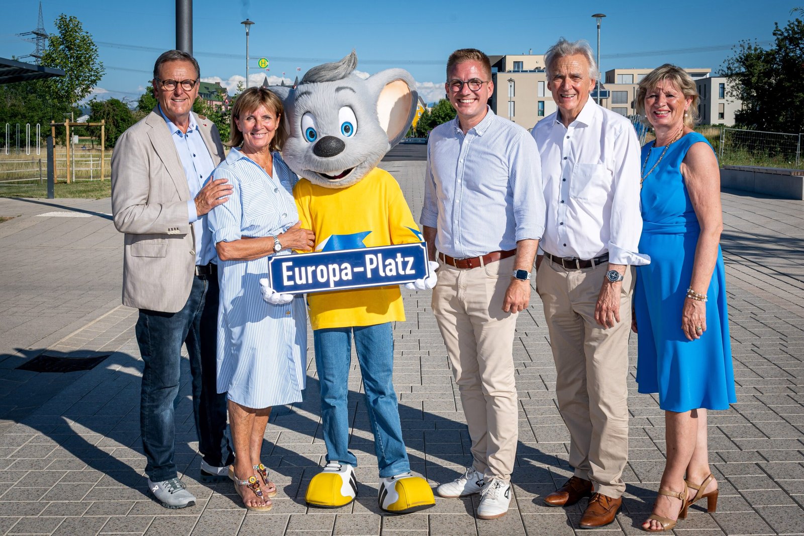 Hinweise zum Urheberrecht: (1) „Europa-Platz“ offiziell eingeweiht: Roland Mack, Marianne Mack, Kai-Achim Klare, Jürgen Mack und Mauritia Mack mit dem neuen Straßenschild "Europa-Platz" © Europa-Park GmbH & Co Mack KG. (2) Neue TV-Serie bei KiKA: „DINO MATES – Ferien bei Madame Freudenreich“: Ab dem 27. Januar laufen täglich um 19 Uhr zwei Folgen bei KiKA © Europa-Park GmbH & Co Mack KG. (3) Das Europa-Park Erlebnis-Resort gehört erneut zu den busfreundlichsten Destinationen in Deutschland: Die Vertreter der ausgezeichneten Destinationen mit WBO-Vizepräsidentin Carolin Grötzinger (hinten, 2. v. l.) und gbk-Vorsitzenden Hermann Meyering (r.) Copyright: WBO © Europa-Park GmbH & Co Mack KG. (4) Arbeiten, wo andere Urlaub machen: Bewerbertage im Europa-Park Erlebnis-Resort: Gesucht werden engagierte Mitarbeitende mit Teamgeist für alle Bereiche des Europa-Park Erlebnis-Resorts © Europa-Park GmbH & Co Mack KG.