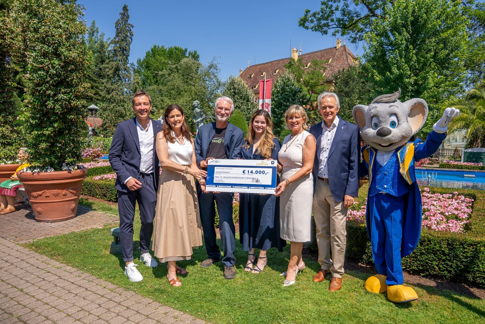 Hinweise zum Urheberrecht: (1) Familienunternehmen übernehmen soziale Verantwortung: Oliver und Bianca Kleine, Mauritia und Jürgen Mack übergeben den Spendenscheck über 14.000 Euro Dr. Thomas Schliermann und Susana Sierra Peláez von Patio 13 © Europa-Park GmbH & Co Mack KG. (2) Neue TV-Serie bei KiKA: „DINO MATES – Ferien bei Madame Freudenreich“: Ab dem 27. Januar laufen täglich um 19 Uhr zwei Folgen bei KiKA © Europa-Park GmbH & Co Mack KG. (3) Das Europa-Park Erlebnis-Resort gehört erneut zu den busfreundlichsten Destinationen in Deutschland: Die Vertreter der ausgezeichneten Destinationen mit WBO-Vizepräsidentin Carolin Grötzinger (hinten, 2. v. l.) und gbk-Vorsitzenden Hermann Meyering (r.) Copyright: WBO © Europa-Park GmbH & Co Mack KG.